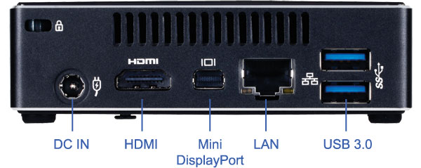 | Gigabyte's Brix Ultra Compact | Intel Core i7-4500U 3.0GHz | BGA 1168 | Intel HD 4400 | 4×3.0 | 1×miniDP (3840×2160), 1×HDMI (4096×2160) | 802.11ac | 4.0 | 1× | 2× (half + full / mSATA III) | 107.6×114.4×29.9 | S/PDIF | |